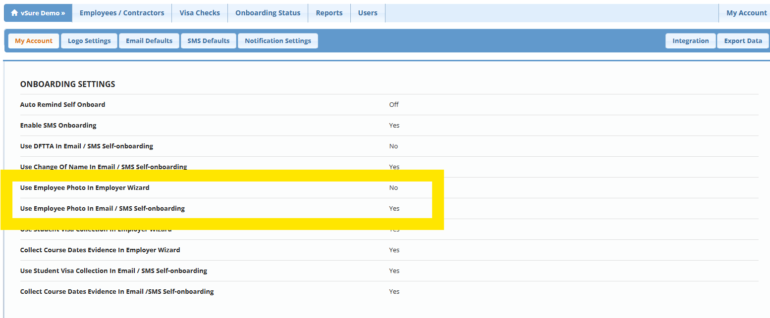 In the Employer Onboarding Wizard and both the Send Self-Onboarding Emails and SMS workflows you can choose whether to request a photo or selfie of the candidate/staff member. This was designed to comply with the obligation to ensure the ID supplied is in fact the worker who is accepting the role.